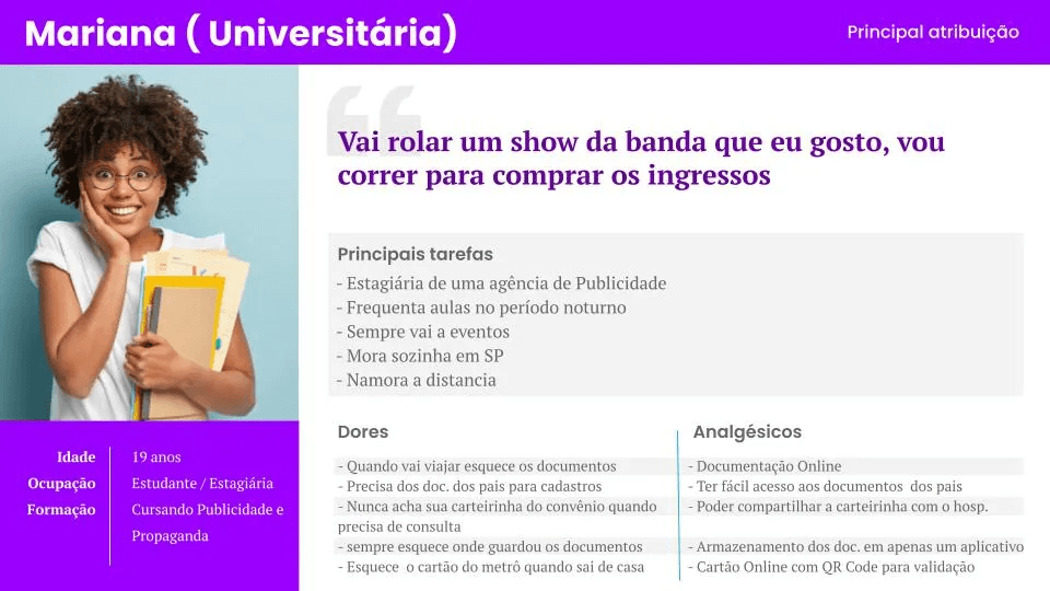 Era uma vez a Mariana, ela é estudante de publicidade e propaganda e estagiária. Ela tem um namoro a distância aonde costuma comprar passagens com frequência para ir visitar o namorado em outra cidade.
