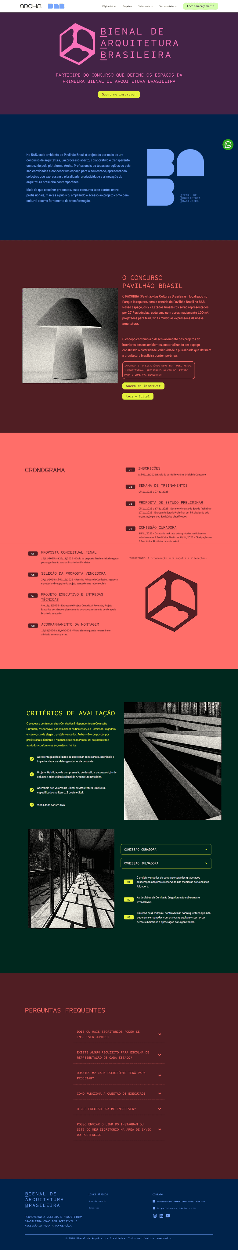 O site foi desenvolvido como o principal canal de comunicação da bienal — reunindo informações sobre a curadoria, programação, formato expositivo e, especialmente, o processo de inscrição para arquitetos interessados em participar da mostra.