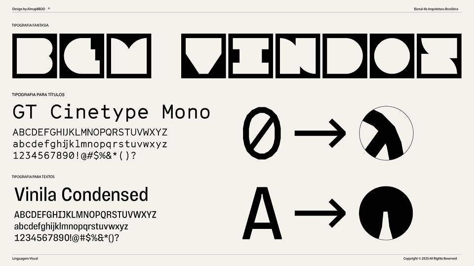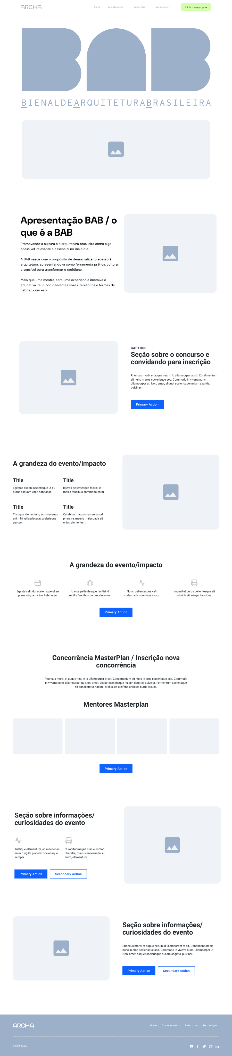 Cada escolha de layout, hierarquia e componente foi guiada pela essência da bienal: uma arquitetura que aproxima, convida e provoca. Os respiros generosos refletem a ideia de espaço; os blocos e grids remetem às estruturas arquitetônicas; e o uso das cores e da tipografia reforça a voz editorial da BAB.