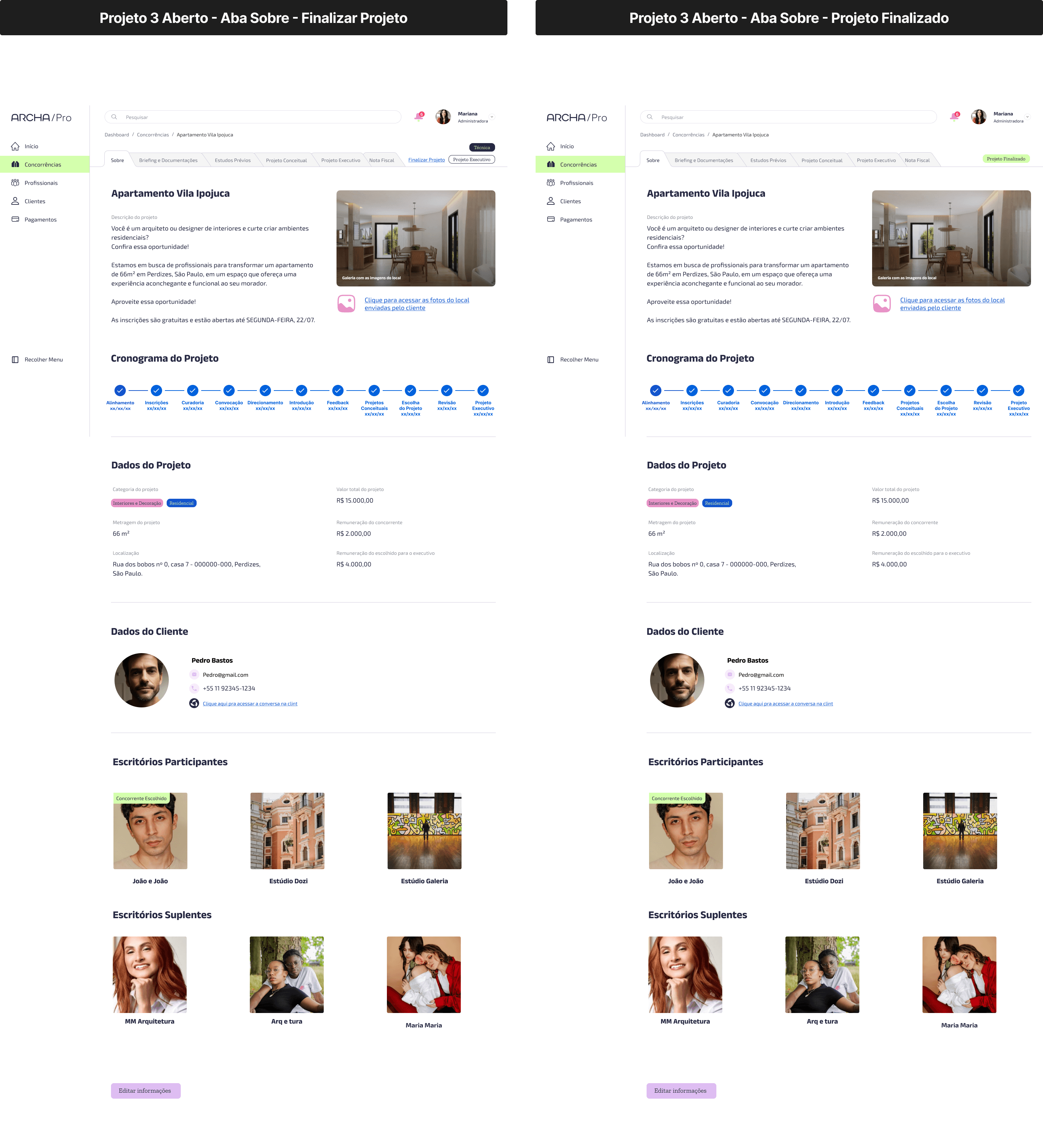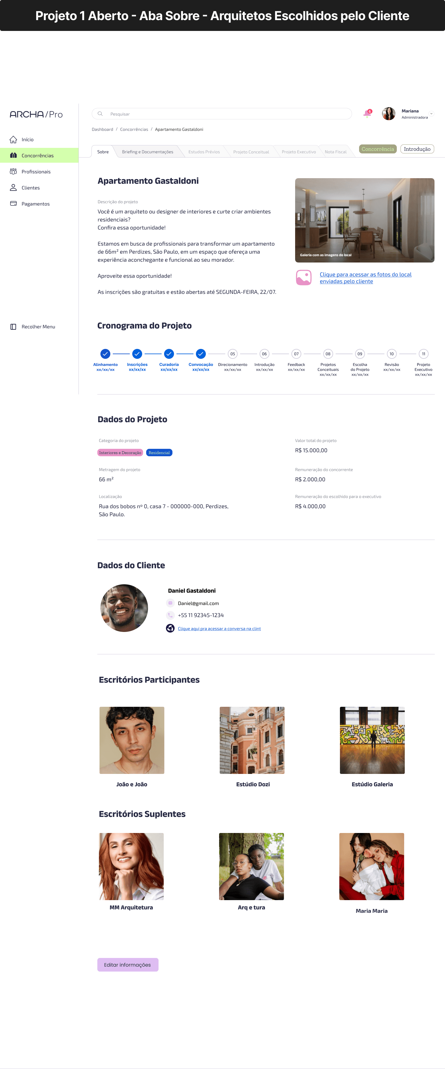 Acessar o projeto do Apto. Gastaldoni, abrir para inscrições e fazer a curadoria dos arquitetos.