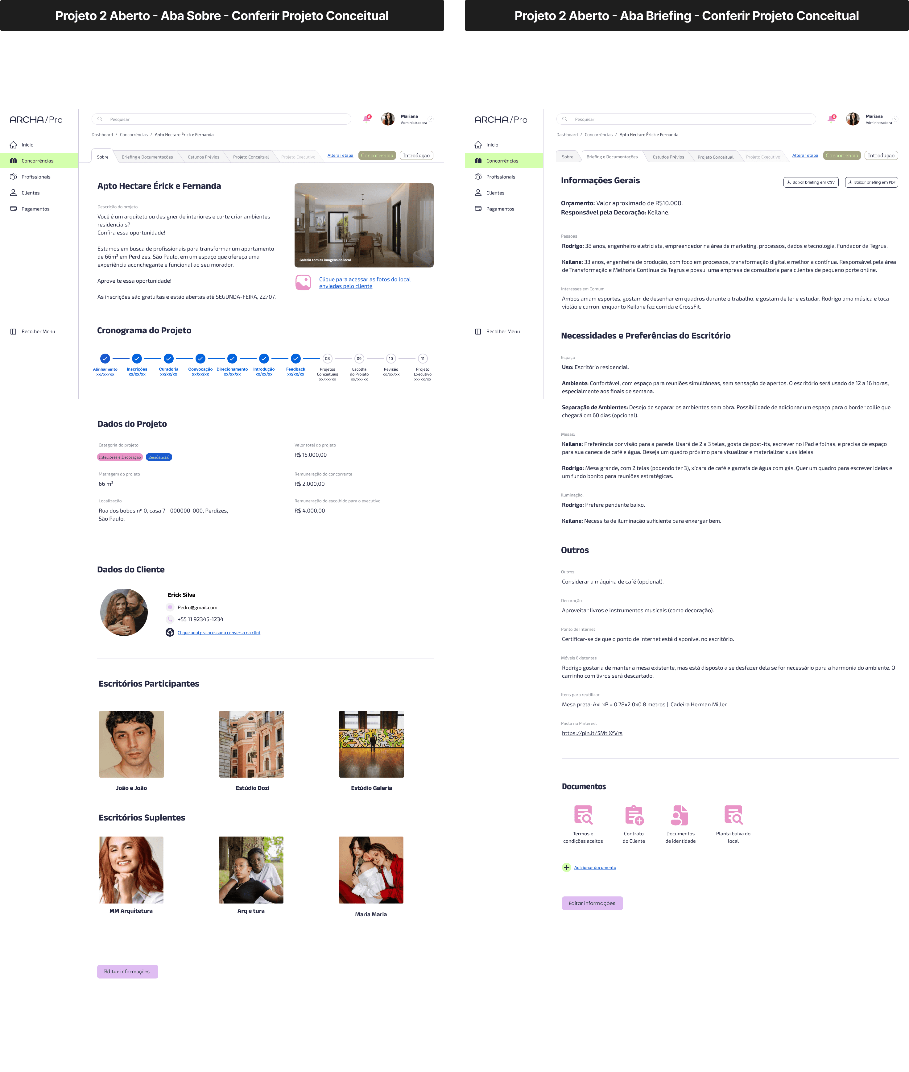 Acessar o projeto do Apto. Hectare Erick e Fernanda e aprovar os documentos dos projetos conceituais enviados pelos arquitetos.